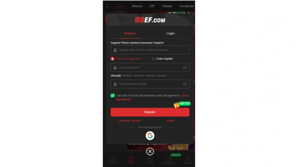 Creating an account is required to start playing. The 88EF Game registration process is quick and easy.