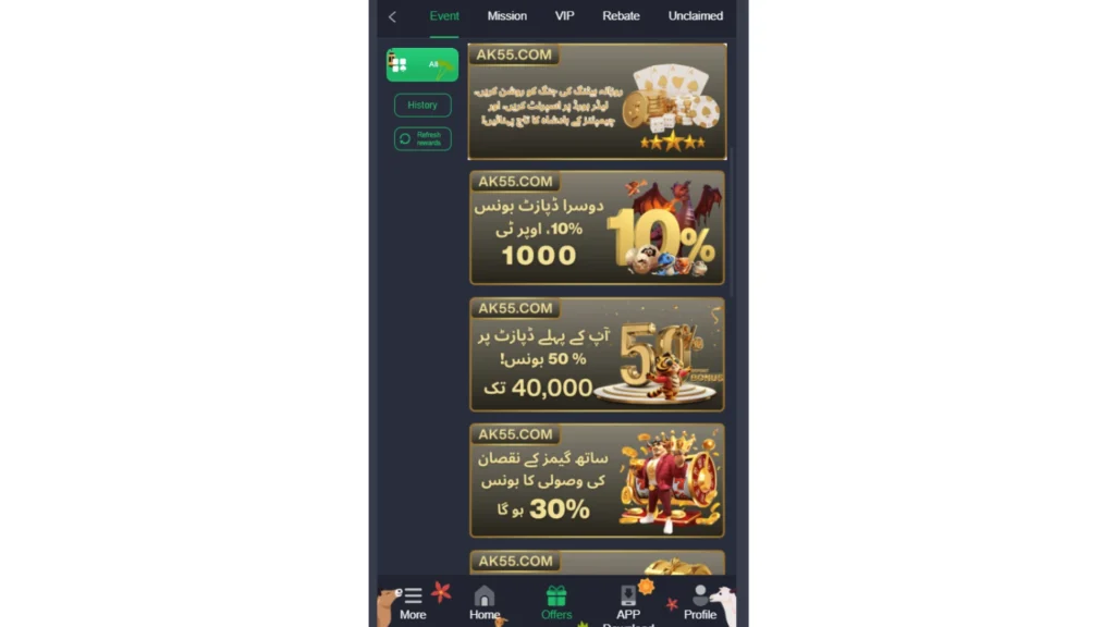 Bonuses make mobile platforms more attractive. Game AK55 offers different reward options.
