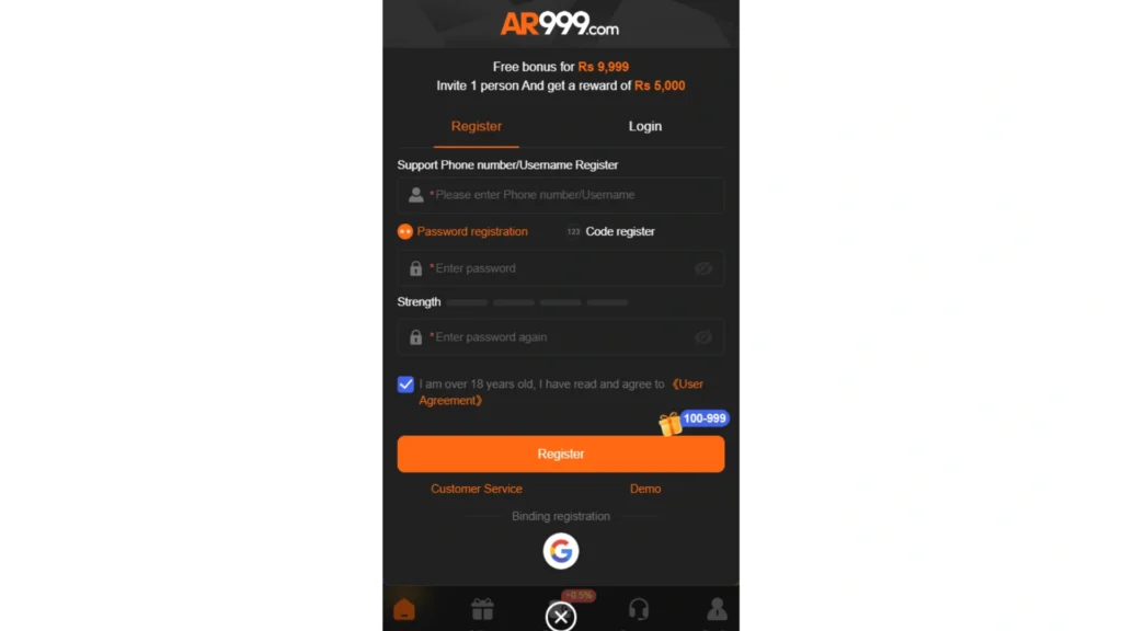 AR999 Game Register Process in Pakistan