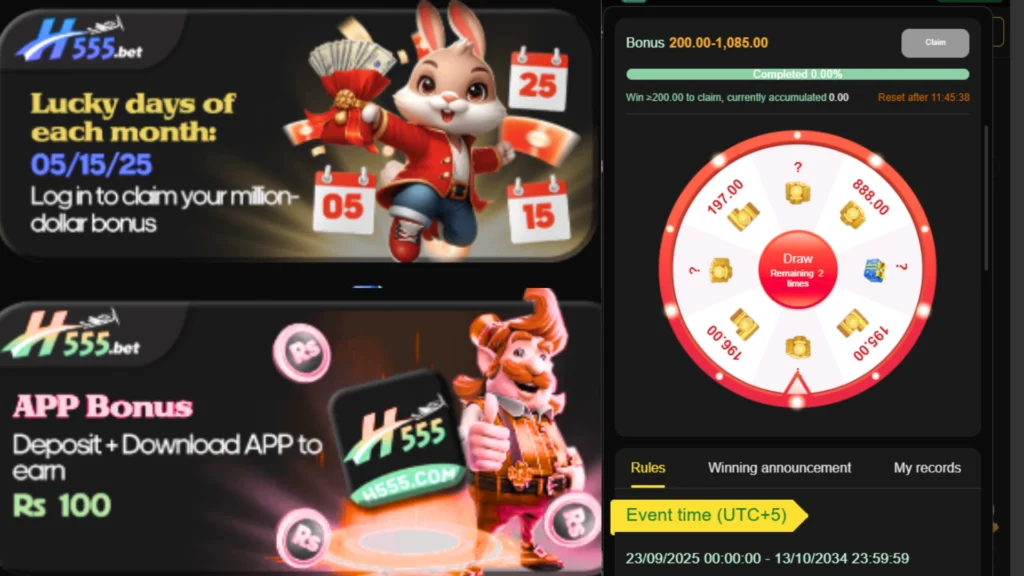 One of the highlights of playing H555 is the bonuses and rewards system. Players can enjoy: