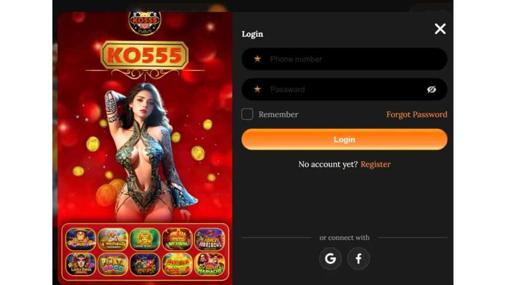 Account creation is quick and smooth in KO555 Game.