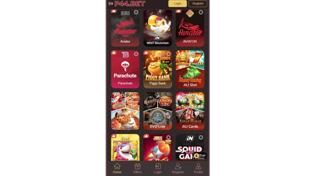 P44 Bet game is an online betting app. It offers casino, cards, slots, lottery, and sports betting.