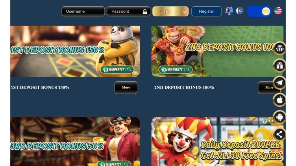 After registration, log in to your new account and make your first deposit. WINPKR 777 supports various payment methods including Easypaisa, JazzCash, and bank transfer. Once your account is funded, you can start playing your favourite games instantly.
